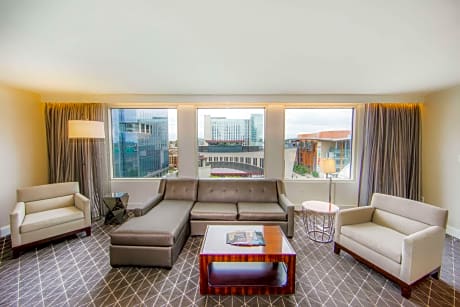 Adjacent to the Country Music Hall of Fame, this all-suite hotel is moments from top Nashville attractions, and features on-site car rental services and on-site dining options. Guests at the Hilton Nashville Downtown can easily discover the Nashville Convention Center and the Bridgestone Arena only moments away. A variety of restaurants, shopping centers, entertainment options and a vibrant nightlife are also within walking distance. The Downtown Nashville Hilton features many thoughtful amenities, including signature Serenity beds. Guests will also appreciate the modern fitness center and knowledgeable concierge services.