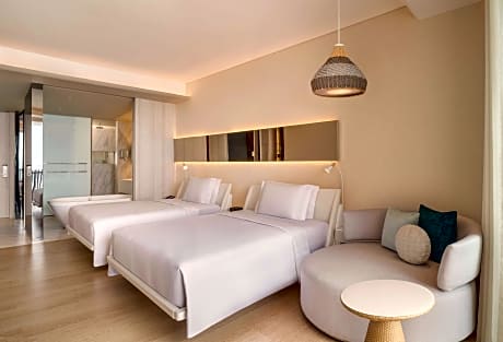 Hilton Pattaya offers 5-star luxury with 180-degree view of Pattaya Beach and 40-inch flat-screen TVs, atop CentralFestival Pattaya Beach Complex. It features an infinity pool, fitness center and spa. Pattaya Hilton offers direct access to the 300 shopping and dining options housed within the beach complex. It is a 1.5-hour drive from Suvarnabhumi International Airport. The property also offers chargeable airport transfer services. Featuring light wood flooring and calming pastels, spacious rooms provide a relaxing environment with a comfortable seating area and private balcony. All rooms come with slippers and a cable TV. Complimentary toothbrush and toothpaste, tea and coffee facilities as well as an electric kettle and slippers are also provided. Private bathrooms have premium toiletries, a rain shower and a separate bathtub. Guests are spoiled for choice with the variety of water sports and outdoor activities offered. Staff are able to converse in English, Japanese, Thai, Korean and Chinese. Union Pay is accepted at the property. Start the day with a hearty breakfast at Edge, which offers international and Asian dishes, an open kitchen and breathtaking bay views. Other dining highlights include light refreshments at Drift. Beverages and delectable dishes can be enjoyed at Horizon, located on the roof top of the hotel. Free Wifi is available in public areas.