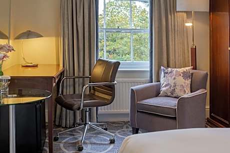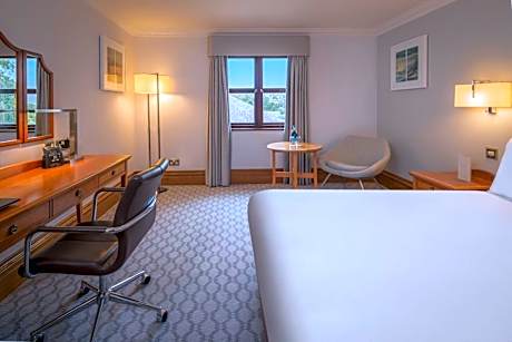 Explore the Cotswolds from Tewkesbury. Set in 140 acres of parkland, 5 minutes’ drive from the M5 and M50 motorways, the 4-star Hilton Puckrup Hall Hotel features its own 18-hole championship golf course. The spacious rooms with attached bathroom are decorated in vibrant and fresh colors. All rooms have a plasma TV, work desk and armchair. Some rooms have floor-to-ceiling windows and views of the golf course. The par-70 golf course has played host to a number of regional championships. There’s a putting green, a driving Range, a bar at the clubhouse and golf lessons are available. The LivingWell Health Club features a 19-station gym, an indoor pool, a sauna and a steam room. Coopers Bar serves drinks and snacks and has a terrace overlooking the golf course. Coopers Restaurant offers both traditional English dishes and international cuisine, Afternoon Tea is also available.