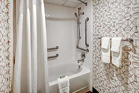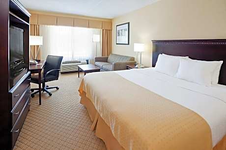 Featuring an on-site restaurant, outdoor pool, and a pergola this New Jersey hotel is just 2 miles from Peddie Country Club. Each room offers a flat-screen cable TV and free Wi-Fi. Holiday Inn East Windsor provides a safety deposit box. The contemporary, cream colored rooms also include a work desk and seating area. Room service is available. Breakfast and dinner are served at JT’s Restaurant and Pub, offering American cuisine and a casual atmosphere. Guests can relax in the sauna or workout in the gym. This beautifully landscaped hotel also offers gardens and a gazebo. East Windsor Holiday Inn is within 12 miles of Princeton University, Six Flags Great Adventure Park and Old Bridge Township Raceway Park.
