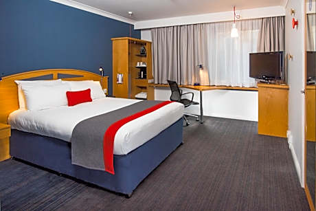 Just a 4-minute drive or 15-minute walk from the terminal, Holiday Inn Express East Midlands Airport offers modern rooms and excellent access to the M1. Just 3 miles from Donington Park Circuit and a 20-minute drive from Derby city center. Alton Towers can be reached in 45 minutes, and Attenborough Nature Reserve is 20 minutes away. Each room has a 32-inch TV and private bathrooms including a power shower, hairdryer and free toiletries. Holiday Inn Express rooms also feature a work desk, tea and coffee facilities, ironing facilities and free Wi-Fi. Some rooms also have beautiful views of the Derbyshire countryside. The Great Room Bar and Lounge features widescreen TVs, and offers a selection of evening meals, light snacks and beverages. The free breakfast buffet is available in the morning and consists of hot items such as bacon, sausages, scrambled eggs and baked beans, as well as a selection of continental items. Holiday Inn Express East Midlands has chargeable on-site parking and also offers Park and Fly packages. The front desk service is also 24-hour. There are also 4 meeting rooms with audio/visual equipment available for hire.