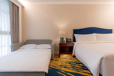 Holiday Inn Golden Mile By IHG provides flawless service and all the necessary facilities for visitors.Stay connected with your associates, as complimentary Wi-Fi is available during your entire visit.To facilitate your arrival and departure, you can pre-book airport transfer services prior to checking in. The hotel offers taxi amenities to assist you in discovering your desired offerings in Hong Kong. When arriving by car, take advantage of the hotel's convenient on-site parking facilities.The hotel offers reception amenities including concierge service, express check-in or check-out, luggage storage and safety deposit boxes to ensure a comfortable stay for guests.Whether it's an extended stay or simply needing fresh attire, dry cleaning service and laundry service provided by hotel ensures your cherished travel garments stay spotless and accessible. Your stay will be comfortable with the presence of 24-hour room service, room service and daily housekeeping as an in-room amenity for your relaxation and enjoyment.To ensure the well-being and convenience of all visitors, smoking is strictly prohibited throughout the entire hotel. In order to ensure the utmost level of relaxation, the guestrooms feature an inviting design and are equipped with all basic necessities, creating a delightful stay experience.To ensure a pleasant stay, a selection of rooms at hotel come furnished with linen service, blackout curtains and air conditioning, all designed with your ease in mind.Several chosen accommodations at Holiday Inn Golden Mile By IHG have a separate living room incorporated into the room design. In select rooms, visitors can enjoy a touch of amusement with the availability of daily newspaper, television, in-room video streaming and cable TV for their entertainment needs. Within specific rooms, a refrigerator, bottled water, a coffee or tea maker, instant coffee, instant tea and mini bar is conveniently available for your use. Understanding the significance of bathroom facilities in enhancing visitor contentment, hotel offers a hair dryer, toiletries and bathrobes within a few chosen chambers. To experience refined leisure, do not miss the opportunity to drop by the executive lounge. Start your day stress-free at Holiday Inn Golden Mile By IHG as breakfast is made available for you on the premises. How about kicking off each day of your getaway with a delicious cup of coffee? At the hotel, relish in the invigorating taste of a freshly brewed, excellent coffee. Various excellent meal offerings at hotel ensure that enticing and easily accessible options are constantly available.Upon your arrival, don't miss experiencing bar for enjoyable in-house evening entertainment.Visitors staying at Holiday Inn Golden Mile By IHG have the option to receive groceries in their room for meal preparation, courtesy of the unique service provided by the hotel. Throughout the day, engage in the entertaining activities available at Holiday Inn Golden Mile By IHG. Unwind and conclude each day delightfully by stopping by salon, steam room and sauna, ensuring a soothing experience. Unwind by the pool at hotel and cherish a leisurely moment. Enjoy a refreshing beverage al fresco at hotel's poolside bar savoring your preferred concoction. Guests who enjoy maintaining their fitness regimen while on holiday can visit the fitness center provided by hotel.
