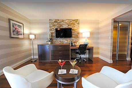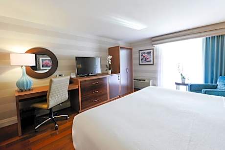 Adjacent to the Skylon Tower in the heart of Niagara Falls, this Ontario hotel features an indoor and an outdoor pool. It features a fitness center, full service restaurant, and free wireless internet access. Modernly decorated, each room comes with a flat-screen cable TV with satellite channels, mini-fridge, ironing facilities and a coffee maker. A hairdryer and toiletries can be found in the bathroom. Some rooms have a spa bath and steam shower. On-site dining is also available at the Coco Terrace Steakhouse and Mr. Coco's Pizza Bar and Lounge for breakfast, lunch and dinner. Room service is also available upon request with surcharge. Holiday Inn Niagara Falls-By the Falls is just 5 minutes' walk from the Fallsview Casino, scenic Queen Victoria Park is only 0.6 mi from the property. Various shops, restaurants and entertainment options of Clifton Hill are 3 minutes' drive or less than 20 minutes' walk.