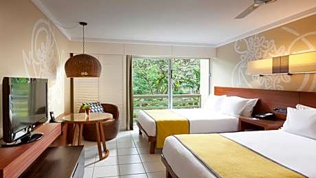 Overlooking the calm waters of Erakor Lagoon, Holiday Inn Resort Vanuatu features a variety of Melanesian inspired rooms, two swimming pools, kids club, Namele Day Spa, tennis courts and nine-hole golf course. Each room has a private balcony with garden or lagoon views. All rooms include air conditioning, ceiling fans, in-room movies and cable TV. The large work space offers high-speed internet access. Each private bathroom has a hairdryer and bathtub. Facilities at Holiday Inn Resort Vanuatu include a fitness room with lagoon views, tennis court and non-motorized water sports. Namele Day Spa offers traditional healing remedies and classic spa therapies. Veranda Restaurant offers buffet and à la carte meals for breakfast and dinner. Guests can enjoy a drink by the pool, or relax on the outdoor terrace in the Lobby Bar. Children under 12 years of age stay and eat for free. Port Vila town center is 5 mi from Holiday Inn Resort Vanuatu. An airport shuttle service can be arranged. -Please be advised per the Department of Water Vanuatu, swimming, diving and fishing is not allowed in the lagoon till further notice. -Our pool side activities have not been impacted, our hotel swimming pools, cabanas by the lagoon and our pool bar facilities are operational per normal. There is no restriction on use of kayaks and catamarans.