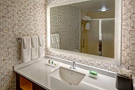 Located in Rocky Mount, Holiday Inn Rocky Mount I-95 @ US 64 by IHG has a bar. Featuring a restaurant, the 3-star hotel has air-conditioned rooms with free WiFi, each with a private bathroom. The hotel has an indoor pool and room service. At the hotel, the rooms include a desk. The rooms in Holiday Inn Rocky Mount I-95 @ US 64 by IHG are equipped with a flat-screen TV and free toiletries. The accommodation has a sun terrace. A business center and vending machines with snacks and drinks are available on site at Holiday Inn Rocky Mount I-95 @ US 64 by IHG. The hotel can conveniently provide information at the reception to help guests to get around the area. Pitt-Greenville Airport is 46 miles from the property.