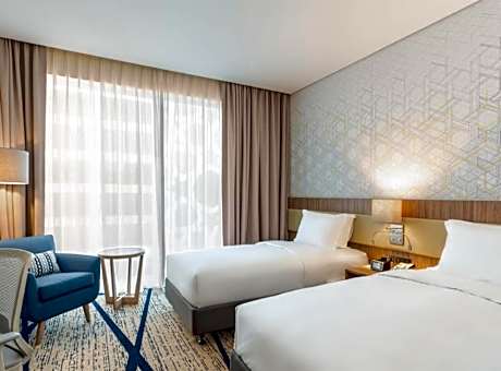 Great care is taken to ensure guests experience comfort through top-notch services and amenities. Remain linked during your visit by utilizing the complimentary internet access available.Prior to your check-in date, you can arrange airport transportation services, guaranteeing a seamless and efficient experience for both arrival and departure.Discovering Al Jubail becomes even more accessible, thanks to the car hire amenities provided at the hotel.The hotel offers complimentary parking for guests who arrive with their own mode of transport. Effortlessly plan your daily activities and travel requirements with luggage storage and safety deposit boxes provided by the front desk services.Securing top-notch tickets and reserving prime dining spots become effortless through assistance from the hotel's tours.During your stay at this fantastic hotel, experience comfort and warmth from the delightful on-site fireplace on those chilly days and nights. For extended visits or whenever required, the dry cleaning service and laundry service ensures your preferred travel garments remain clean and accessible. During leisurely days and evenings, in-room amenities such as 24-hour room service, room service and daily housekeeping enable you to maximize your stay in the room.For minor or impromptu requirements, the convenience stores can promptly cater to them without the necessity of stepping out from the hotel.The hotel is completely smoke-free.In limited designated zones, smoking is exclusively permitted.Crafted for coziness, every guestroom provides an array of features, guaranteeing a tranquil night's sleep while maintaining the level of comfort.For a more enjoyable stay, select rooms at hotel are equipped with linen service and air conditioning.At Holiday Inn & Suites Al Jubail By IHG, a selection of rooms can be found that showcase unique design elements such as a separate living room.Expand your in-room entertainment choices with various amenities, such as television offered in certain accommodations.Rest assured that your hydration needs will be met, as some guestrooms are equipped with a refrigerator, bottled water, a coffee or tea maker, instant coffee and instant tea.It is worth noting that certain guest bathrooms feature a hair dryer, toiletries and bathrobes for your convenience. Each morning at Holiday Inn & Suites Al Jubail By IHG, a scrumptious, homemade breakfast kick-starts the day. Begin your holiday mornings right with your essential cup of coffee, offered daily at the cafe on-site.During your visit, indulge in a range of delightful culinary choices at hotel to enhance your experience.Concerned about your dining preferences? Fret not! Holiday Inn & Suites Al Jubail By IHG offers an assortment of culinary varieties featuring halal choices, catering to all tastes. Holiday Inn & Suites Al Jubail By IHG provides a superb assortment of leisure amenities for guests to enjoy. During your time at Holiday Inn & Suites Al Jubail By IHG, you'll be delighted by the unique privilege of accessing the secluded beach.Treat and spoil yourself by stopping at massage, steam room, spa and sauna for a memorable experience.Begin your holiday perfectly by taking a plunge into the swimming pool. At the hotel, enjoy a laid-back beverage experience by the poolside bar, sipping on a soothing cocktail.Eliminate those holiday calories by stopping by hotel and making use of their well-equipped exercise amenities.
