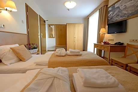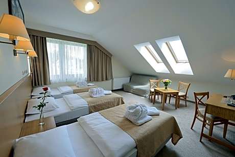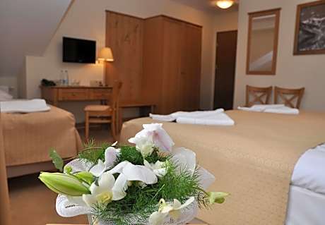 Hotel Alpejski is inspired by the Alps regional architecture and offers bright rooms with wooden furniture and free Wi-Fi. Guests can use the swimming pool, the fitness center, and the saunas free of charge. Each room at the Alpejski includes a flat-screen TV and a private bathroom with shower and hairdryer. Most rooms offer a balcony. A breakfast buffet is offered in the air-conditioned restaurant serving Polish and Alps region cuisine. There is also a Tyrol-themed barbecue bar and a beer garden. Dinners can be ordered at the property. Hotel Alpejski features a children’s playground. There is a ski storage room and the front desk is available 24/7. Private monitored parking for an additional fee. The hotel is located 1.9 mi from the Polanica Zdrój Train Station and 0.9 mi from the nearest store.