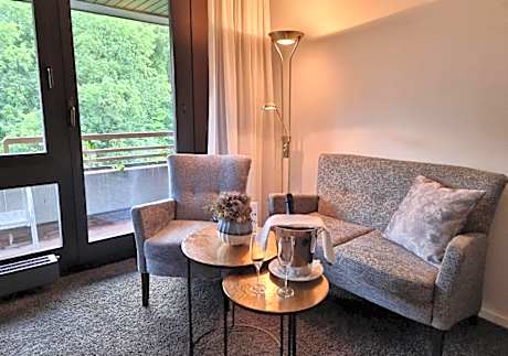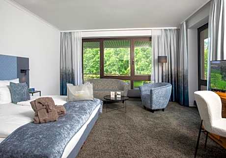 This elegant hotel in Bad Orb is connected to the Toskana Therme Spa by a hallway, which guests can cross in their bathrobe. Hotel an der Therme lies in green parkland in the scenic Spessart Nature Park. Guests enjoy complimentary breakfast, spa use and admission to the thermal baths. Guests can dine in Il Ristorante at the thermal baths, or else at the Kurpark restaurant in the hotel. The hotel also has a foyer bar with wine shop and terrace. Guests booking a rate with breakfast on this website enjoy complimentary admission to the thermal baths and unrestricted use of the Toskana Therme is included during the booked travel period within the opening hours (on the day of arrival from 3 p.m., not on the day of departure). Please note that breakfast and spa use are included.