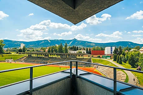 Only 1.9 mi away from Liberec’s center, Hotel Arena Liberec is 2625 feet off National Road 35 to Prague. The hotel offers tennis courts and bowling alley. Free Wi-Fi is standard in all rooms. Each is fitted with a work desk, TV and telephone. Some rooms also have a balcony with views of Ještěd Ridge. On-site Restaurant Stadion serves Czech and Italian cuisine. Drinks and snacks can also be purchased from the vending machines located in the lobby. Private parking for a fee is available at Arena Hotel. The nearest bus stop is just 164 feet away.