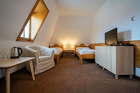 Hotel Arkada has a shared lounge, terrace, a restaurant and bar in Levoča. 13 miles from Spis Castle and 26 miles from Dobsinska Ice Cave, the hotel provides ski storage space. The property has room service, and luggage storage for guests. At the hotel, rooms include a desk. Featuring a private bathroom with a shower and free toiletries, rooms at Hotel Arkada also feature free WiFi, while some have a city view. The rooms at the accommodation come with a flat-screen TV with satellite channels and a safety deposit box. A buffet, à la carte or continental breakfast is served at the property. You can play pool at this 3-star hotel, and the area is popular for hiking and skiing. Speaking Czech, German, English and Polish, staff at the reception can help you plan your stay. St. Jacobs Cathedral in Levoca is a few steps from Hotel Arkada, while Gothic Church Zehra is 15 miles from the property. Poprad-Tatry Airport is 20 miles away.