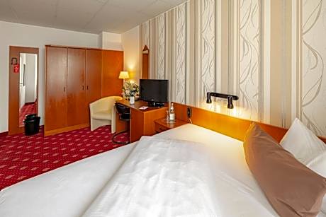 This attractive hotel offers comfortable, modern accommodations, and is just a 10 minute tram ride from central Leipzig and a 7 minute walk from the lovely Friedenspark. The 3-star Hotel Berlin offers bright, cozy rooms with a welcoming sitting area and modern amenities. In warm weather, guests can sit out in the leafy courtyard of the terrace and enjoy a refreshing drink or snack from the bar. From the nearby tram stop, only 170 yards from the hotel, you can reach central Leipzig directly. The Völkerschlachtdenkmal (Monument to the Battle of the Nations) is a 15 minute walk away.