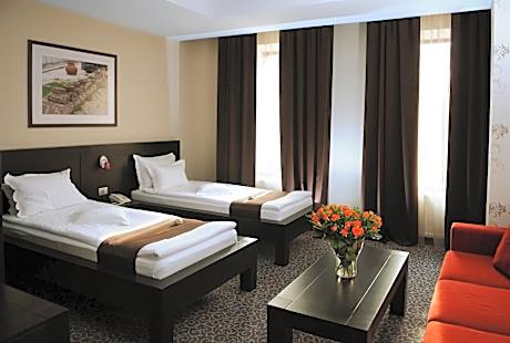 The historic and refurbished building hosting Hotel Cherica, dating back to 1896, is placed in the heart of the Constanta's commercial and touristic district. It is within a short walking distance of Modern Beach at the Black Sea. It offers spacious rooms and suites, with individually-controlled air conditioning and free high-speed WiFi and wired internet access. Guests at Hotel Cherica can benefit from freshly cut flowers in the rooms, individually decorations and modern facilities such as a 32-inch LCD TV with digital channels and a safe. The luxurious suites also feature a living area and an anteroom fitted with a working desk and free coffee and tea making facilities, as well as a mini-bar with soft and alcoholic drinks. The video-surveyed free parking is in front of the property and the hotel reception is at guests disposal 24-hours with a bellboy service. The Constanta International Airport is reachable in 20 minutes' by car from Hotel Cherica.