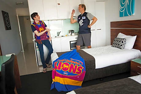 Hotel Chino is an independent hotel in Woolloongabba offering spacious, well-appointed rooms and fully self-contained apartments with access to a basic fitness center with an outdoor pool, hot tub and barbecue facilities. Unlimited WiFi and secure, covered parking is provided. Hotel Chino is located opposite Buranda bus and train stations, within 5 minutes’ walk of Princess Alexandra Hospital and 5 minutes' drive to Greenslopes Private and the Mater/Lady Cilento Hospitals. All rooms at Hotel Chino include a flat-screen TV. The airport is just 17 minutes’ drive in the Airport tunnel accessed around the corner, and the M7 Motorway to the Gold Coast is also easily accessed. Walk to the ‘Gabba Sports Stadium and Brisbane’s CBD (Central Business District) less than 2.5 mi from Hotel Chino.