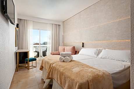 The Condesa Hotel is set in front of the beach in Alcudia and 20 minutes’ walk from the port. It features an outdoor pool and rooms with balconies. Rooms at Hotel Condesa are brightly decorated and air conditioned. Each room has a TV, mini-bar and fridge. Facilities at Hotel Condesa include a restaurant, bar and terrace. The hotel provides entertainment and various sports, including table tennis, aerobics and archery. The Condesa Hotel is close to the center of Alcudia and its many restaurants, bars and cafés. Puerto de Pollensa is a 20-minute drive away and Palma can be reached in less than an hour, by car. These are the meal bases that offers the Hotel Condesa: We offer Bed&Breakfast. Inclusive Plus.