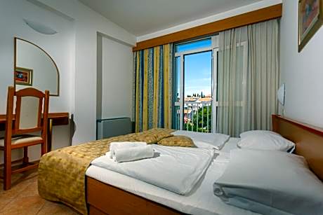 Located right by the beach, 2625 feet from the city center of Krk, the Hotel Dražica - Hotel Resort Dražica features 2 outdoor pools with slides and various sports courts. Live music entertainment and activity programs are offered, as well as free WiFi access. All rooms are air-conditioned and come equipped with a satellite TV and a private bathroom including a hairdryer. Characteristic Croatian and international cuisine can be enjoyed in the restaurant on the ground floor of the Drazica Hotel or on the large terrace. Deck chairs, sun umbrellas and towels are available at extra surcharge. You can buy souvenirs and postcards on site. There is also a fitness center, a tennis court and a minigolf course. Drinks are included with both breakfast and dinner.