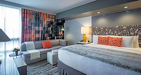 Located directly across from the Oregon Convention Center, Hotel Eastlund offers contemporary accommodations featuring 42-inch smart HDTVs, complimentary Wi-Fi, and the option for advanced high-speed internet for multiple devices. Each guest room is thoughtfully designed with a compact refrigerator, a gourmet coffee machine, and a work desk with USB charging ports. The modern bathrooms feature walk-in showers and sleek gray tile for a clean, comfortable experience. Metropolitan Tavern provides rooftop dining with skyline views, craft beers, and a seasonal menu highlighting fresh, local ingredients. In the lobby, a cozy café offers handmade espresso drinks and a selection of light breakfast items each morning. Hotel amenities include a 24-hour fitness center, business center, community workspace, and a sundry shop. The front desk is staffed around the clock for your convenience. With the Convention Center MAX Station and Portland Streetcar just steps away, guests enjoy seamless access to downtown Portland and surrounding neighborhoods. Portland Union Station is 1.9 mi away, and Portland International Airport is 11 mi from the hotel.
