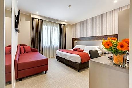 Hotel Eurogarden położony jest zaledwie 20 minut jazdy od zabytków i atrakcji Rzymu. Oferuje on zakwaterowanie w otoczeniu zieleni. Do dyspozycji Gości jest przestronny ogród, odkryty basen i umeblowany taras. Na miejscu można korzystać z bezpłatnego WiFi i parkingu. Każdy pokój i apartament wyposażony jest w klimatyzację, telewizor z dostępem do kanałów satelitarnych i pay-per-view oraz minibar. Wnętrza urządzone są w klasycznym stylu z drewnianymi podłogami, a każdy obiekt otoczony jest parkiem. W sali śniadaniowej serwowane jest włoskie śniadanie w formie bufetu, które obejmuje rogaliki, płatki zbożowe i napoje. Latem Goście mogą delektować się śniadaniem bezpośrednio w parku. Z Eurogarden dostępny jest transfer na dworzec kolejowy Flaminio w historycznym centrum Rzymu, oddalony o zaledwie 15 minut jazdy pociągiem. Odległość od Tivoli i Castelli Romani wynosi 35 km. Dworzec kolejowy Labaro znajduje się niecałą milę od obiektu.