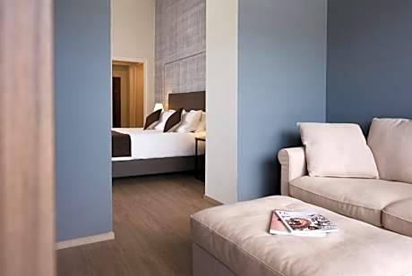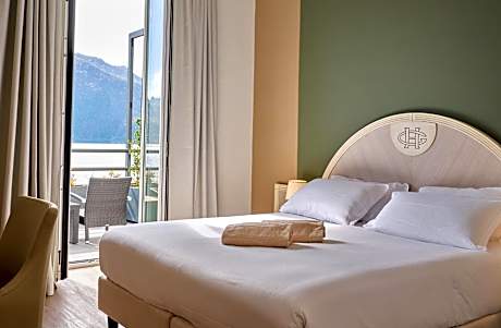 An elegant room with fine furnishings. Enjoy the lake view from the terrace, which is complete with sun loungers and teak wood flooring.