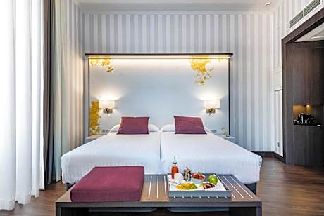 The elegant Palacio San Martín is in a quiet pedestrian street in central Madrid. It is across from the beautiful Descalzas Reales Convent, a 5-minute walk from Puerta del Sol Square. The air-conditioned rooms at Intur Palacio San Martín are decorated in a classic style. They are soundproof and have a private bathroom, TV and free Wi-Fi access. The hotel´s restaurant serves creative international food. There is also a bar where you can get a snack or a drink. The Hotel Palacio San Martín has an impressive marble lobby and an original elevator. There is also a gym and internet corner. Gran Via Boulevard is 200 yards from the hotel, and El Corte Inglés Department Store is just 65 ft away. There are 3 metro stations within a short walk of the Intur Palacio.