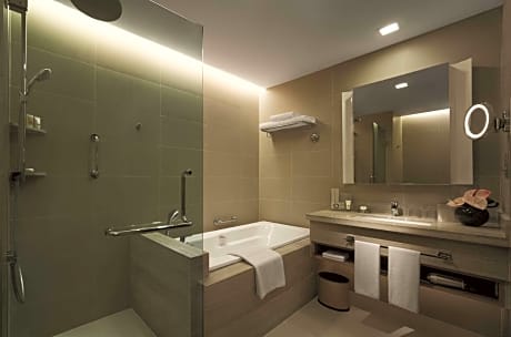 JEN Johor Puteri Harbor by Shangri-La welcomes guests with a rooftop swimming pool, a fitness center and free WiFi access in all areas. This luxurious hotel is located just a 5-minute drive to the Legoland theme park. The popular Johor Premium Outlets and Senai International Airport are both a 35-minute drive away. Featuring hardwood floors, each elegant guestroom is fitted with a flat-screen TV with satellite channels, a seating area and tea/coffee making facilities. It also has an attached bathroom equipped with a hairdryer. Guests can enjoy a relaxing steam bath or traditional massages. JEN Johor Puteri Harbor by Shangri-La also features a 24-hour front desk, luggage storage space and meeting/banquet facilities. Offering beautiful harbor views, Harbor Café will serve an array of local and international flavors. Guests can also choose from a selection of wines and cocktails at Sky Bar.