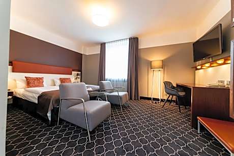This family-run, 4-star-superior hotel opposite Münster Train Station offers soundproofed rooms, free Wi-Fi, and a large spa area. Münster’s historic cathedral and town hall are a 10-minute walk away. Each of the air-conditioned rooms and suites at the Hotel Kaiserhof has its own style. They all include satellite TV, a safety deposit box, and a free bottle of mineral water. Varied breakfast buffets are provided at the Kaiserhof Münster. Guests are also welcome to dine in the Gabriel’s restaurant. Our restaurant Gabriel's is closed on Sundays and public holidays. The Kaiserhof's spa area features 3 saunas, 2 hot tubs and relaxation areas, as well as a small fitness studio. Münster/Osnabrück Airport is about 16 mi away from the Hotel Kaiserhof. Private parking is available on site.