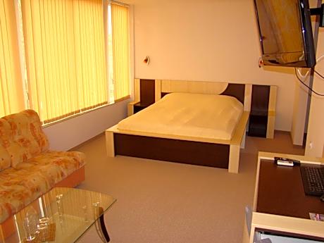 Located in Burgas, a 6-minute walk from Central Beach Sarafovo, Family Hotel Kedara provides accommodations with a garden, free private parking, a terrace and a restaurant. Among the various facilities of this property are a casino and massage services. The property has a 24-hour front desk, airport transportation, an ATM and free WiFi throughout the property. Guest rooms are equipped with air conditioning, a flat-screen TV with cable channels, a fridge, a coffee machine, a shower, free toiletries and a desk. Each room is equipped with an electric tea pot and a private bathroom, while some rooms are equipped with a balcony and some have sea views. Guest rooms include a closet. The hotel offers 2-star accommodations with a sauna and playground. Museum of Aviation is a 10-minute walk from Family Hotel Kedara, while Burgas Saltworks is 4.2 miles away. Burgas Airport is 0.6 miles from the property.