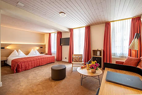 The suisse tradition Hotel Kreuz & Post Grindelwald enjoys a central location, 49 feet from the Grindelwald Train Station, close to many shops. It offers several restaurant, free WiFi, a wellness area with rooftop terrace and panoramic views of the Alps. All rooms offer panoramic mountain views and come with a flat-screen TV, a mini-bar, a radio and a telephone. Slippers and bathrobes are provided as well. In the various restaurants and in the panorama dining room you can enjoy traditional as well as modern cuisine. The Rooftop Wellness features a finish sauna, a salt sauna, low-temperature infrared cabin, a steam bath, a relaxation area with cocoon relax loungers and a foot bath experience, free of use for guests. Children can have fun in the playroom and there is also a library and a bright meeting room.