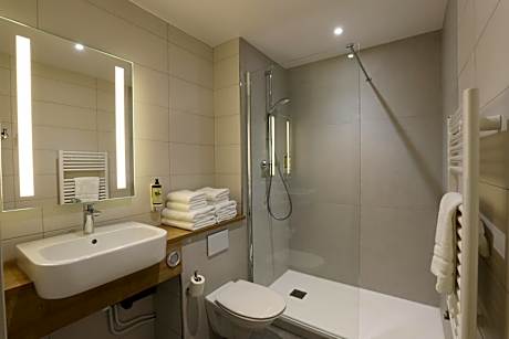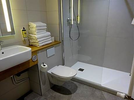 The triple room features air conditioning, soundproof walls, as well as a private bathroom boasting a shower and a hairdryer. The triple room provides a tea and coffee maker, a wardrobe, heating, a flat-screen TV, as well as a quiet street view.