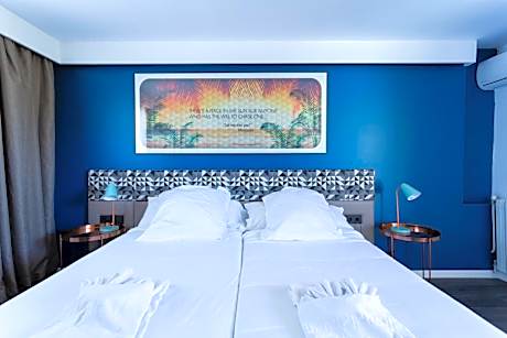 Hotel La Concha Soul is located in the seaside town of Peguera, Mallorca, 1312 feet from the beach. It offers a garden with a swimming pool. Featuring vintage décor, this boutique hotel has a bar which offers snacks and drinks. Tourist information can be provided at the reception. Free WiFi is provided. Rooms come with a TV and a private bathroom with shower. Some rooms have mountain or pool views and all rooms have a private terrace. Guest benefit from music themed rooms and self service breakfast in shared kitchen. Guests can find a range of bars, restaurants, shops and a surf school at the Paguera Boulevard, located 5 minutes’ walk away. Free public parking is available at the hotel entrance. Palma de Mallorca Airport is 25 minutes’ drive away.