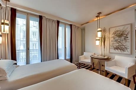 Located a 5-minute walk from the Champs Elysées, this 19th-century boutique hotel features original works of arts in each room. It provides a 24-hour reception and an airport shuttle service. Each design guest room is equipped with a mini-bar, a safe and a flat-screen TV. The marble bathrooms include bathrobes. Free Wi-Fi access is available in each room at Le A. The 19th-century bar at Le A features a glass roof. A continental breakfast is served every morning. Afternoon tea is provided every day after 16:00. Laptop computers are available to borrow upon request, and there is also a ticket service at reception. Saint-Phillipe-du-Roule Metro Station is just 262 feet away and provides access to the famous department store Galeries Lafayette on the Chamsp-Elysées, which is 1312 feet away. The Arc de Triomphe is a 15-minute walk from the hotel.
