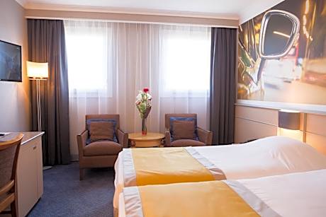 Hotel Le Paddock położony jest na wsi w Magny-Cours i oferuje klimatyzowane, przestronne pokoje, zaledwie 2 km od toru wyścigowego Formuły 1 Magny-Cours. Oferuje on bezpłatne szybkie WiFi, odkryty basen, centrum odnowy biologicznej z sauną i łaźnią turecką oraz kort tenisowy. Z pokoi roztacza się widok na okolicę i pole golfowe. Do dyspozycji Gości jest telewizor z płaskim ekranem i dostępem do kanałów satelitarnych, telefon i biurko. W pokojach z łazienką znajduje się zestaw do parzenia kawy i herbaty. Codziennie rano w hotelowej restauracji serwowane jest śniadanie w formie bufetu. W porze lunchu i kolacji restauracja serwuje również dania kuchni regionalnej. Na terenie obiektu znajduje się bar Le Green z tarasem, na którym można delektować się orzeźwiającym napojem. Hotel znajduje się zaledwie 100 metrów od pola golfowego Nivernais i 15 km od Nevers i jego zabytków. Na miejscu dostępny jest bezpłatny parking publiczny.