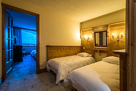 This room has a balcony facing east or south, with panoramic views of the slopes and a view on the village. It has a private bathroom.