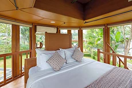 Hotel Le Temple Borobudur features a garden, shared lounge, a terrace and restaurant in Borobudur. With free WiFi, this 5-star resort offers room service and a 24-hour front desk. The resort has an outdoor swimming pool, fitness center, nightclub and a kids' club. At the resort rooms are equipped with air conditioning, a seating area, a flat-screen TV with satellite channels, a safety deposit box and a private bathroom with a bidet, free toiletries and a hairdryer. The rooms have an electric tea pot, while some rooms contain a balcony and others also feature mountain views. The rooms have a desk. A buffet, à la carte or continental breakfast is served at the property. Spa and wellness facilities including a hot tub and a hot spring bath, as well as the possibility to arrange massage treatments, are at guests' disposal during their stay at Hotel Le Temple Borobudur. You can play squash and minigolf at the accommodation, and the area is popular for cycling. Borobudur Temple is half a mile from Hotel Le Temple Borobudur, while Yogyakarta Tugu Train Station is 26 miles away. Adisutjipto Airport is 31 miles from the property, and the property offers a paid airport shuttle service.