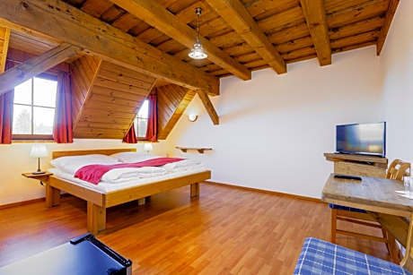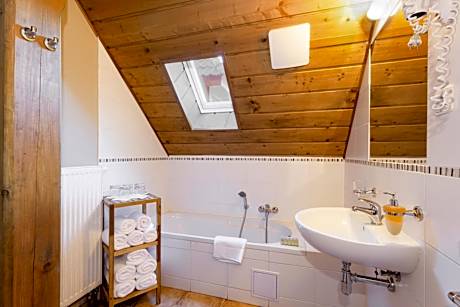 Located at Lake Lipno in Frymburk, Hotel Leyla was built in the style of an Alpine chalet. It features rooms with attached bathroom with wooden décor and free WiFi. An on-site restaurant with a lake-view terrace offers Czech and international cuisine. Breakfast is served every morning. The rooms offer a seating area. Most of them overlook the Lipno Reservoir and the forest-covered mountains of the Sumava Ski Region. Guests can benefit from the beginners' ski slopes which start behind the Hotel Leyla. Advanced skiers and snowboarders can go skiing in the modern Ski-areal Lipno ski center, which is 4.3 mi away. In winter, ice-skating is possible on the Lipno Reservoir. Hotel Leyla is a good starting point to enjoy collecting mushrooms, hiking or cycling in the region. Within 984 feet there is a tennis court and a rental service for bicycles, in-line skates an canoes. An in-line skating track is there right in front of the building. Lipno Lake offers swimming and diving opportunities. 5 mi from the Hotel Leyla, guests can rent canoes and rafts as well as sailing boats.
