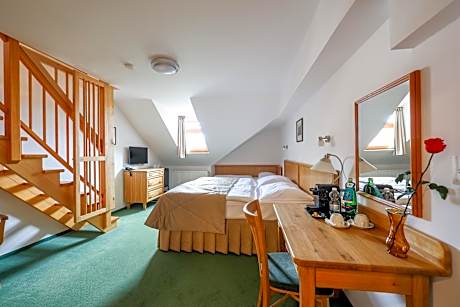 Located in the historic center of the UNESCO World Heritage Site Český Krumlov and right on the banks of the Vltava River, Hotel Mlýn offers air-conditioned rooms with free WiFi access. Each room comes with a TV or a flat-screen TV with satellite channels, a mini-bar, a safety deposit box and a private bathroom with bath, toilet and hairdryer. Some rooms also offer views to the Vltava River. A breakfast buffet is served every morning at the Mlýn, and a 24-hour front desk, a laundry service and a luggage storage room are provided. The building furthermore has a elevator. The Český Krumlov Castle and the Regional Museum are 1640 feet away, and the Český Krumlov Golf Course and the Zlatá Koruna Monastery are within 4.3 mi. A bus stop is 0.6 mi from the hotel, while the local train station is 1.9 mi away. Public parking is possible at a surcharge.