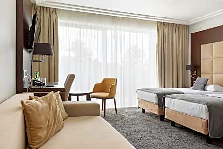 Hotel Olympic Spa & Wellness is located in a picturesque area right next to the Vistula River and offers bright rooms with free Wi-Fi, as well as satellite TV. The Silesian Beskids mountain range offers excellent conditions for outdoor activities all year round. Each room at Olympic is air-conditioned and offers private bathroom facilities. There is also a mini-bar. Hotel Olympic Spa & Wellness features contemporary, bright and airy design. The hotel's restaurant offers meals from around the world along with delicious desserts. Professional stuff is always ready to help in choosing the best wine for your meal. Lobby Bar offers aromatic coffee and colorful drinks. Guests are also invited to play bowling, billiards and table football in the evening at the Lobby Bar. Guests have access to a wellness area in which there are a swimming pool, a hot bath, sauna and and an area for kids. The hotel has free private parking and is located right next to the train station.