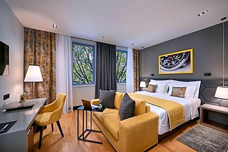 Located just 1.2 mi from Split’s historic center and the UNESCO-listed Diocletian’s Palace, SIA Split Hotel delivers contemporary style and effortless convenience. A short stroll from Trstenik Beach (1969 ft), Bačvice and Firule beaches (0.9 mi), this modern hotel offers on-site lounge-restaurant SIANA serving delicious cuisine, outdoor patio and gym. There is a fully equipped conference room with a capacity of up to 50 participants. Each of 24 rooms is designed for ultimate comfort with premium furniture, additional sofa, flat TV, mini bar, and safe box. Every room has air condition, free high-speed WiFi, tea/coffee making facillities, bathrobe and slippers. The private bathroom is equipped with either a shower or bathtub, a hair dryer, and all essential toiletries. Guests can start their day with a diverse seasonal breakfast and enjoy a selection of local, Mediterranean, and international cuisine at the hotel lounge-restaurant during the day. The 24-hour reception is available for local tips and planning excursions. While the lobby bar provides a stylish space to unwind. Split Airport (14 mi) is easily accessible, with airport transfers available upon request. Whether for business or leisure, Sia Split Hotel offers a stylish and convenient stay in Croatia’s coastal gem.