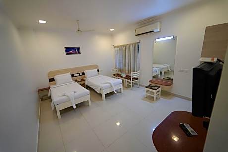 Experience an abundance of unparalleled facilities and features at Hotel Palmyra Grand Inn. Maintain seamless communication using the complimentary Wi-Fi at hotel. Effortlessly arrange transportation to and from the airport using the hotel's airport transfer services.Discovering Tirunelveli becomes even more accessible through the taxi and car hire amenities provided at the hotel.For visitors traveling by automobile, complimentary parking is available. During your stay at this fantastic hotel, the attentive front desk personnel can provide you with a range of amenities such as concierge service, express check-in or check-out, luggage storage and safety deposit boxes. Obtaining passes for the town's top entertainments becomes effortless with hotel's tours.During chilly days and evenings, the hotel provides an in-house fireplace to ensure your warmth.At the hotel, utilize the on-site dry cleaning service and laundry service to maintain your beloved travel attire fresh, allowing you to bring fewer clothes.Craving relaxation? Make the most of your stay at the Hotel Palmyra Grand Inn with convenient amenities like room service and daily housekeeping at your disposal. For all your minor, last-minute requirements, the convenience stores can promptly cater to them, eliminating the need to venture out. For visitors wishing to smoke, designated smoking zones can be found.At Hotel Palmyra Grand Inn, every guestroom is provided with convenient amenities and fittings to ensure a comfortable stay. Enhance your experience at hotel with the knowledge that certain rooms are equipped with linen service and air conditioning for your convenience.Certain rooms boast in-room amusement features such as daily newspaper and television, offering guests an enjoyable stay.In select rooms within the hotel, a refrigerator and mini bar is available to cater to your requirements when desired.Essential restroom facilities are equally significant, and at the hotel, some visitor bathrooms offer toiletries to enhance your experience. Begin your day with a scrumptious on-site breakfast available each morning at Hotel Palmyra Grand Inn. Begin your day feeling refreshed and invigorated as you enjoy a delightful cup of quality coffee available at the cafe situated within the hotel. At the hotel, an assortment of easily accessible and delicious meal choices are available to satisfy your appetite whenever it strikes.At Hotel Palmyra Grand Inn, they are committed to catering to your unique requirements. They offer a variety of meal choices, encompassing halal alternatives for those with special dietary preferences. At the hotel, discerning guests can also enjoy on-site culinary facilities like BBQ facilities tailored to their preferences. During your stay at hotel, an array of engaging activities and amenities guarantees a delightful experience. Conclude your holiday perfectly with a visit to massage, salon and spa on your final days.