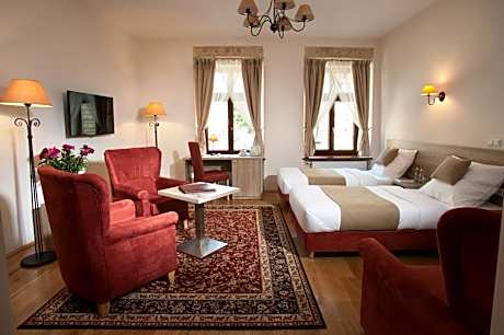 Czterogwiazdkowy Hotel Santi mieści się w zabytkowej kamienicy na Starym Mieście w Krakowie, zaledwie kilka kroków od Rynku Głównego. Oferuje on klasycznie urządzone pokoje z bezpłatnym WiFi i malowniczym widokiem na Stare Miasto. Każdy pokój w Hotelu Santi wyposażony jest w telewizor z płaskim ekranem i dostępem do kanałów satelitarnych, zestaw do parzenia kawy i herbaty oraz łazienkę z wanną lub prysznicem, bezpłatnym zestawem kosmetyków i suszarką do włosów. Pokoje na 1. i 2. piętrze zdobią unikatowe freski z XVIII i XIX wieku. Hotel oferuje transfer z lotniska i sprzedaż biletów. Śniadanie w formie bufetu serwowane jest w hotelowej restauracji, a obok recepcji znajduje się bar. Obiekt oddalony jest o 1 km od dworca kolejowego Kraków Główny. Do Zamku Królewskiego na Wawelu można dojść w 7 minut, a do dzielnicy Kazimierz – w 15 minut.