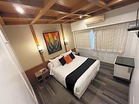 An air-conditioned room with carpeted floors, heating, LCD TV with cable channels and a private bathroom with hairdryer. There is a safety deposit box.