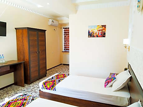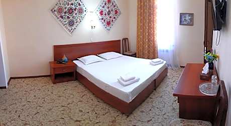 Great care is taken to ensure guests experience comfort through top-notch services and amenities.Remain linked during your visit by utilizing the complimentary internet access available.Prior to your check-in date, you can arrange airport transportation services, guaranteeing a seamless and efficient experience for both arrival and departure.Services offered by taxi, car hire and shuttle at the hotel ensure effortless exploration of Bukhoro. The hotel offers complimentary parking for guests who arrive with their own mode of transport.Effortlessly plan your daily activities and travel requirements with concierge service, express check-in or check-out, luggage storage and safety deposit boxes provided by the front desk services.Securing passes to the city's top attractions is simple with the hotel's ticket service and tours.For extended visits or whenever required, the laundromat, dry cleaning service and laundry service ensures your preferred travel garments remain clean and accessible.During leisurely days and evenings, in-room amenities such as 24-hour room service, room service and daily housekeeping enable you to maximize your stay in the room. For minor or impromptu requirements, the convenience stores can promptly cater to them without the necessity of stepping out from the hotel.The hotel is completely smoke-free. In limited designated zones, smoking is exclusively permitted. Crafted for coziness, every guestroom provides an array of features, guaranteeing a tranquil night's sleep while maintaining the level of comfort. For a more enjoyable stay, select rooms at hotel are equipped with linen service and blackout curtains. At Hotel Shams, a selection of rooms can be found that showcase unique design elements such as a balcony or terrace.For certain chosen rooms, guests can enjoy in-room amusement like television, in-room video streaming and cable TV as a part of their stay. Rest assured that your hydration needs will be met, as some guestrooms are equipped with a refrigerator, bottled water, instant coffee and instant tea. It is worth noting that certain guest bathrooms feature a hair dryer, toiletries and bathrobes for your convenience. Begin your day on a delightful note with a scrumptious complimentary breakfast, consistently served at Hotel Shams. Begin your holiday mornings right with your essential cup of coffee, offered daily at the cafe on-site.During your visit, indulge in a range of delightful culinary choices at hotel to enhance your experience. Concerned about your dining preferences? Fret not! Hotel Shams offers an assortment of culinary varieties featuring halal choices, catering to all tastes.Experience unparalleled comfort as groceries can be brought right to your room at Hotel Shams through their distinctive delivery assistance. For those with discerning taste buds, having an on-site BBQ facilities and shared kitchen at your disposal will undoubtedly be appreciated.