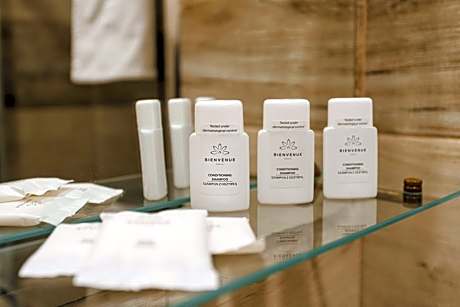 - Osłona akrylowa oddzielająca gości od personelu w głównych obszarach kontaktu
