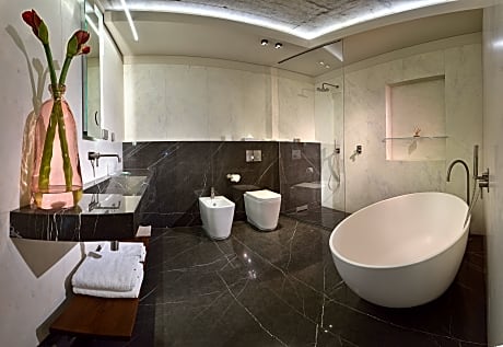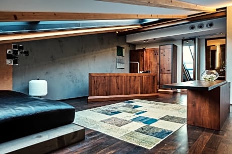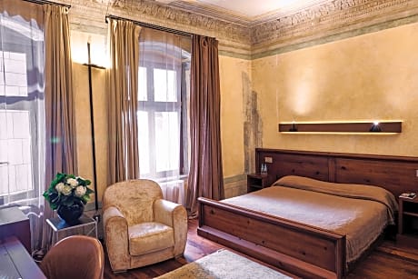 A stylish room done in a style inspired by the Art Deco period. It offers free internet and mineral water.
