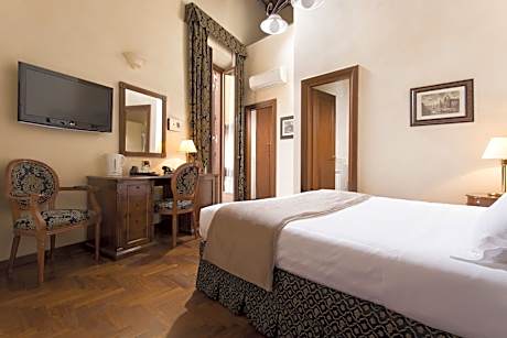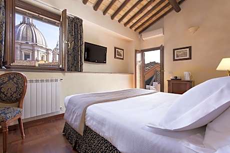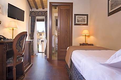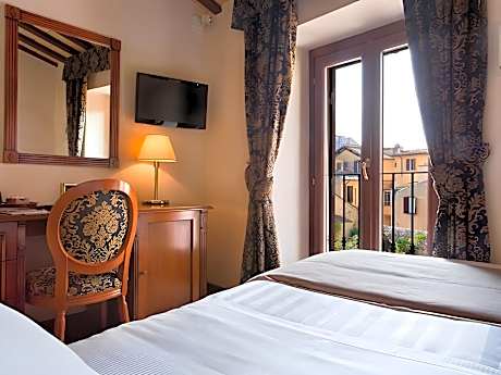 The Hotel Teatro Pace is surrounded by the artisans' workshops and typical Roman trattorias found in the winding streets around Piazza Navona. It features elegant, uniquely decorated rooms with free Wi-Fi. The old theater which gave the street and the hotel its name is set right across from this characteristic property. Piazza Navona is a 2-minute walk away. Decorated in a late Baroque style, the Teatro Pace Hotel is delightful inside and out. Climb up the imposing old stairway, dating back to the 16th-century, to reach your comfortable, beautifully furnished room. All rooms have air conditioning, a Sienna-marble bathroom with a shower, and an electric teakettle with a selection of teas and coffee. Some rooms have wooden-beamed ceilings, and many have a balcony with charming views of the Roman rooftops. A continental breakfast is served each morning in the comfort of your room. It includes sweet and savory food such as pastries, cold cuts and cheeses, and with hot drinks and juices. License Number(s): 058091-ALB-00486, IT