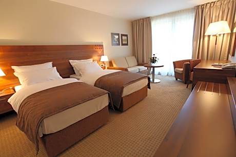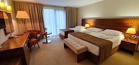 Set in a picturesque vicinity of a medieval castle, Hotel Trakošćan offers vacation in the unspoiled nature. All rooms are elegantly decorated and air-conditioned. An indoor pool, massage facilities and a hot tub are at guests’ disposal. The rooms are fitted with an LCD cable TV, a work desk and a bathroom with hairdryer, bath and toiletries. Some rooms feature a balcony with Trakošćan Castle views. Free private parking is available. Beautiful nature is surrounded with hills, forest and a lake, fishing, hiking and sightseeing can be enjoyed. A bar on a platform is set directly on the lake and offers refreshing drinks during the day. A buffet style breakfast is served each morning. Guests can relax in the on-site wellness area offering a sauna, a steam bath and beauty parlors. Hotel Trakošćan is 50 mi away from Zagreb and 25 mi from Varaždin. The Slovenian border is only 4.3 mi away.