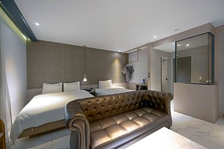 Hound Hotel Seomyeon Beomcheon offers top-notch services and amenities, ensuring guests experience utmost comfort. Share your photos and respond to emails at your convenience, thanks to the free Wi-Fi internet access offered by motel.Visitors can take advantage of complimentary parking directly at the motel.Reception services such as express check-in or check-out and luggage storage are available to accommodate your requirements. Room amenities feature daily housekeeping, allowing you to unwind and make the most of your visit. The motel maintains a completely smoke-free zone, providing a breathable atmosphere. Smoking is limited to specified smoking zones.Each accommodation at Hound Hotel Seomyeon Beomcheon is thoughtfully created and adorned to provide visitors with a comfortable, home-like atmosphere.In certain rooms, the motel offers linen service, blackout curtains and air conditioning for guest convenience and satisfaction.At Hound Hotel Seomyeon Beomcheon, uniquely crafted rooms provide various layout choices, featuring spaces equipped with separate living room and balcony or terrace.In select rooms, guests at the motel can enjoy top-notch in-room entertainment with television, in-room video streaming and cable TV available for their convenience. Rest assured, in a few chosen rooms, you will find the convenience of a refrigerator, bottled water, instant coffee and instant tea at your disposal. Maintain your cleanliness and comfort using a hair dryer, toiletries and bathrobes available in select guest restrooms. Indulge in the numerous pursuits available at Hound Hotel Seomyeon Beomcheon.Unwind after your day by exploring the hot tub and find warmth and relaxation. License Number(s): 7573700441