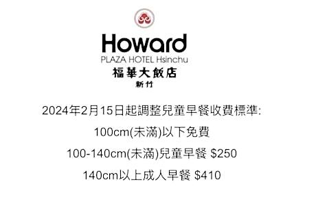 At Howard Plaza Hotel Hsinchu, exceptional service and top-notch amenities create a memorable experience for guests. Complimentary internet access is available in the hotel to ensure you stay connected during your visit. Arrange your trips to and from the airport using the hotel's convenient transportation services booking.Discover the wonders of Hsinchu with ease by utilizing the services provided by taxi and car hire. Complimentary parking is available for guests.Continuously receive the support you require through front desk amenities such as concierge service, luggage storage and safety deposit boxes. At the hotel, their tours can even assist you in booking tickets and securing reservations for leisure activities and adventures. Always look your best in your preferred attire with the dry cleaning service and laundry service provided at Howard Plaza Hotel Hsinchu.Craving relaxation? In-room amenities such as room service and daily housekeeping allow you to maximize your time spent inside the room. Due to health concerns, smoking is strictly prohibited within the entire premises of hotel.For the health and well-being of all guests and staff, smoking is restricted exclusively to assigned zones. Accommodations come equipped with all the conveniences required for a restful night's slumber. A selection of rooms feature linen service, blackout curtains and air conditioning to ensure your comfort and convenience.A few chosen rooms are equipped with daily newspaper, television and cable TV to ensure guest amusement. In certain rooms, the hotel offers visitors access to a refrigerator and a coffee or tea maker. Howard Plaza Hotel Hsinchu offers a hair dryer and bathrobes in the restrooms of specific accommodations. A delightful breakfast is the perfect way to begin your day, and at Howard Plaza Hotel Hsinchu, you can always indulge in a scrumptious meal on-site. Allow your journey to be free from the pangs of hunger! On-site eateries offer delicious and accessible meal choices. At Howard Plaza Hotel Hsinchu, guests can take pleasure in the delightful recreational amenities provided for their entertainment.Conclude your days in complete tranquility by paying a visit to hot tub, steam room, spa and sauna for ultimate relaxation. At Howard Plaza Hotel Hsinchu, a wide array of amenities guarantees a fulfilling experience throughout your visit. Make your holiday truly memorable by taking a rejuvenating plunge into the pool.At the hotel fitness center, you have the option to engage in your daily exercise routine or simply alleviate your jet lag by breaking a sweat. License Number(s): 新竹市旅館067號/53298178/瑞