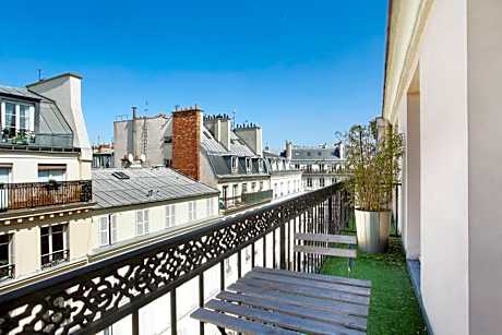 Just a 5-minute walk from Place de Clichy Metro Station and the square’s lively restaurants and cafés, Maison Nabis by HappyCulture is a 4-star hotel offering free WiFi. Decorated in chocolate and cream tones, the contemporary rooms at Maison Nabis by HappyCulture offer a TV with satellite channels. All rooms are air-conditioned and also feature a safety deposit box and a courtesy tray. A continental breakfast buffet can be enjoyed every day on site. Drinks are proposed in the hotel's bar which features colorful armchairs. Galeries Lafayette department store and Opéra Garnier are a 15-minute walk away, while local transport links provide access to the rest of the city. Saint-Lazare Train Station is 2133 feet away, which has national transfers. Small pets are accepted for a supplement of €30/night