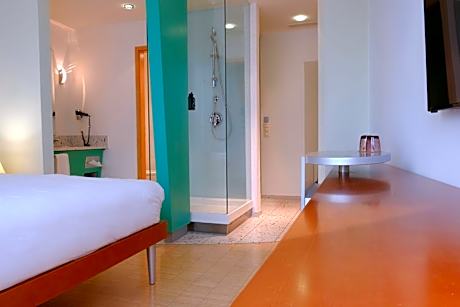 The spacious double room offers air conditioning, a seating area, as well as a private bathroom featuring a shower and a hairdryer. The double room's kitchenette, which features kitchenware, is available for cooking and storing food. Rooms on the upper floors are reachable by elevator. The unit offers 1 bed.