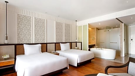 InterContinental Hua Hin Resort By IHG oferuje doskonałą obsługę i wszelkie niezbędne udogodnienia dla gości. Pozostań w kontakcie ze swoimi współpracownikami dzięki bezpłatnemu Wi-Fi dostępnemu przez cały pobyt. Aby ułatwić przyjazd i wyjazd, przed zameldowaniem można zarezerwować transfer lotniskowy. Hotel oferuje taksówki, wypożyczalnię samochodów i transfer busem, aby ułatwić poruszanie się po Hua Hin/Cha-am. Osoby podróżujące samochodem docenią bezpłatny parking na terenie hotelu. Hotel oferuje usługi recepcji, w tym usługi konsjerża, przechowalnię bagażu i sejfy, aby zapewnić gościom komfortowy pobyt. W razie potrzeby, biuro sprzedaży biletów i organizator wycieczek mogą również pomóc w rezerwacji biletów i zapewnieniu rezerwacji na najlepsze pokazy i wydarzenia w okolicy. Niezależnie od tego, czy przyjeżdżasz na dłuższy pobyt, czy po prostu potrzebujesz świeżej odzieży, pralnia samoobsługowa, pralnia chemiczna i pralnia hotelowa zapewnią, że Twoje cenne ubrania podróżne pozostaną nieskazitelnie czyste i dostępne. Twój pobyt będzie komfortowy dzięki całodobowej obsłudze pokoju, obsłudze pokoju i codziennemu sprzątaniu, które zapewnią Ci relaks i przyjemność. Potrzebujesz czegoś na ostatnią chwilę? Sklepy spożywcze zaspokoją Twoje potrzeby bez żadnych niedogodności. Aby zapewnić dobre samopoczucie i wygodę wszystkim gościom, palenie jest surowo zabronione na terenie całego hotelu. Palenie jest dozwolone wyłącznie w wyznaczonych strefach dla palących wyznaczonych przez hotel. Aby zapewnić najwyższy poziom relaksu, pokoje gościnne charakteryzują się przytulnym wystrojem i wyposażone są we wszystkie podstawowe udogodnienia, co gwarantuje przyjemny pobyt. Aby zapewnić przyjemny pobyt, wybrane pokoje w hotelu wyposażone są w pościel, zasłony zaciemniające i klimatyzację, zaprojektowane z myślą o Państwa wygodzie. W InterContinental Hua Hin Resort By IHG dostępne są różne konfiguracje pokoi, z oddzielnym salonem i balkonem lub tarasem w niektórych pokojach. W wybranych pokojach goście mogą cieszyć się odrobiną rozrywki dzięki codziennej prasie, telewizji, strumieniowemu przesyłaniu wideo w pokoju i telewizji kablowej. W wybranych pokojach do Państwa dyspozycji jest lodówka, woda butelkowana, ekspres do kawy lub herbaty, kawa rozpuszczalna, herbata rozpuszczalna oraz minibar. Rozumiejąc znaczenie łazienek dla zadowolenia gości, hotel oferuje suszarkę do włosów, przybory toaletowe, szlafroki i ręczniki w wybranych pokojach. Aby doświadczyć wyrafinowanego wypoczynku, nie przegap okazji, aby odwiedzić salon Executive Lounge. Rozpocznij dzień bez stresu w InterContinental Hua Hin Resort By IHG, gdzie na miejscu serwowane jest śniadanie. A może chcesz rozpocząć każdy dzień od pysznej filiżanki kawy? W hotelu rozkoszuj się orzeźwiającym smakiem świeżo parzonej, doskonałej kawy. Różnorodna oferta dań w hotelu zapewnia kuszące i łatwo dostępne opcje. Po przyjeździe koniecznie odwiedź bar, aby cieszyć się wieczorną rozrywką. Przez cały dzień korzystaj z oferty rozrywkowej InterContinental Hua Hin Resort By IHG. Koniecznie odwiedź łatwo dostępną plażę w hotelu. Zrelaksuj się i zakończ dzień relaksującym masażem, hot tub, łaźnią parową i spa. Zrelaksuj się przy basenie w hotelu i rozkoszuj się chwilą relaksu. Ciesz się orzeźwiającym napojem na świeżym powietrzu w hotelowym barze przy basenie, delektując się ulubionym napojem. Goście, którzy lubią dbać o formę podczas wakacji, mogą odwiedzić hotelowe centrum fitness.